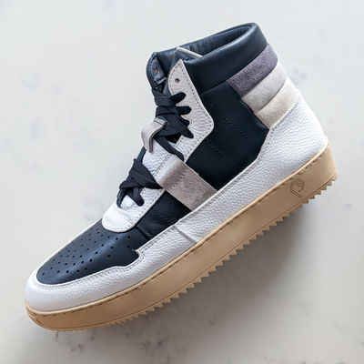 The P2 follows in the P1's footsteps as a classic, casual high top sneaker with a premium feel. It takes all the design lines from the P1 and adds a few more to create a more cohesive, interesting design. With the same fine details like piping, painted edges, and blind seams, this sneaker delivers that luxurious quality that is synonymous with the Polychrome name.
